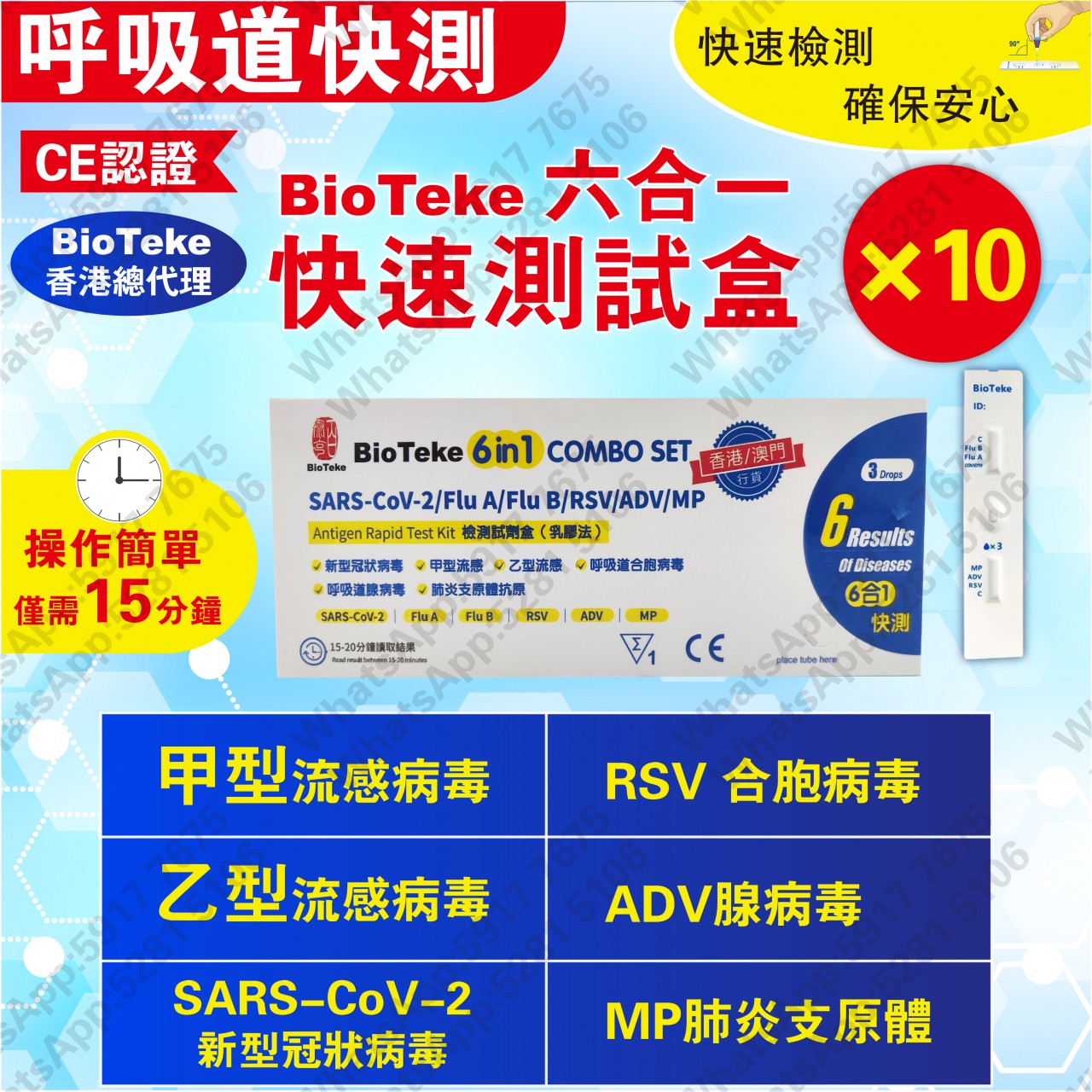 • BIOTEKE-6合1 新冠病毒/甲/⼄型流感/RSV合胞/ADV腺病毒/MP&Flu肺炎快速抗原檢測試劑盒 10支(獨立包裝)(新舊包裝隨機)【額外加送拭子適合兒童採樣用】