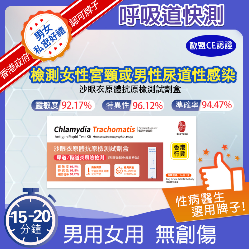可定性檢測臨床女性宮頸樣本或男性尿道樣本中是否含有沙眼衣原體抗原。